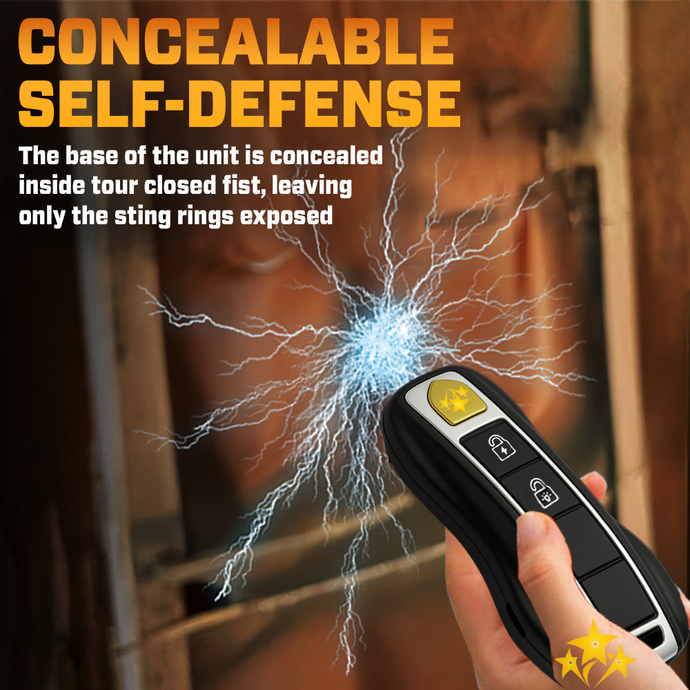 This compact car key-sized stun device delivers a jaw-dropping 57,000,000 volts - more than most mini stun gxns available today. Just firing it into the air is enough to deter most threats. If needed, its high-voltage electrodes can disable an attacker in seconds - even through thick clothing.